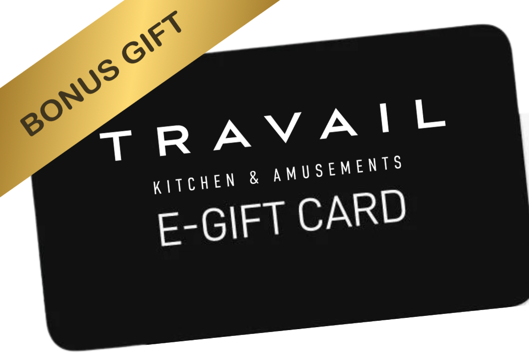 Gift cards are valid for use at Travail Kitchen & Amusements (including the Basement Bar).